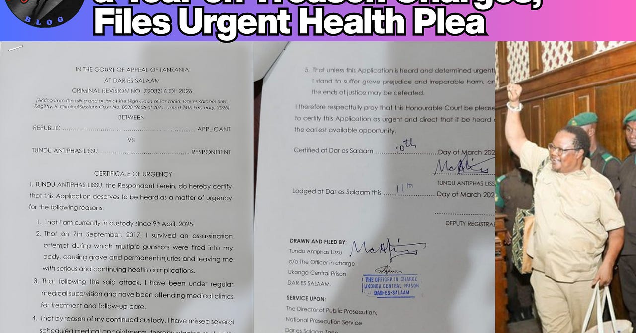 TUNDU LISSU: Tanzania Opposition Leader, Held a Year on Treason Charges, Files Urgent Health Plea