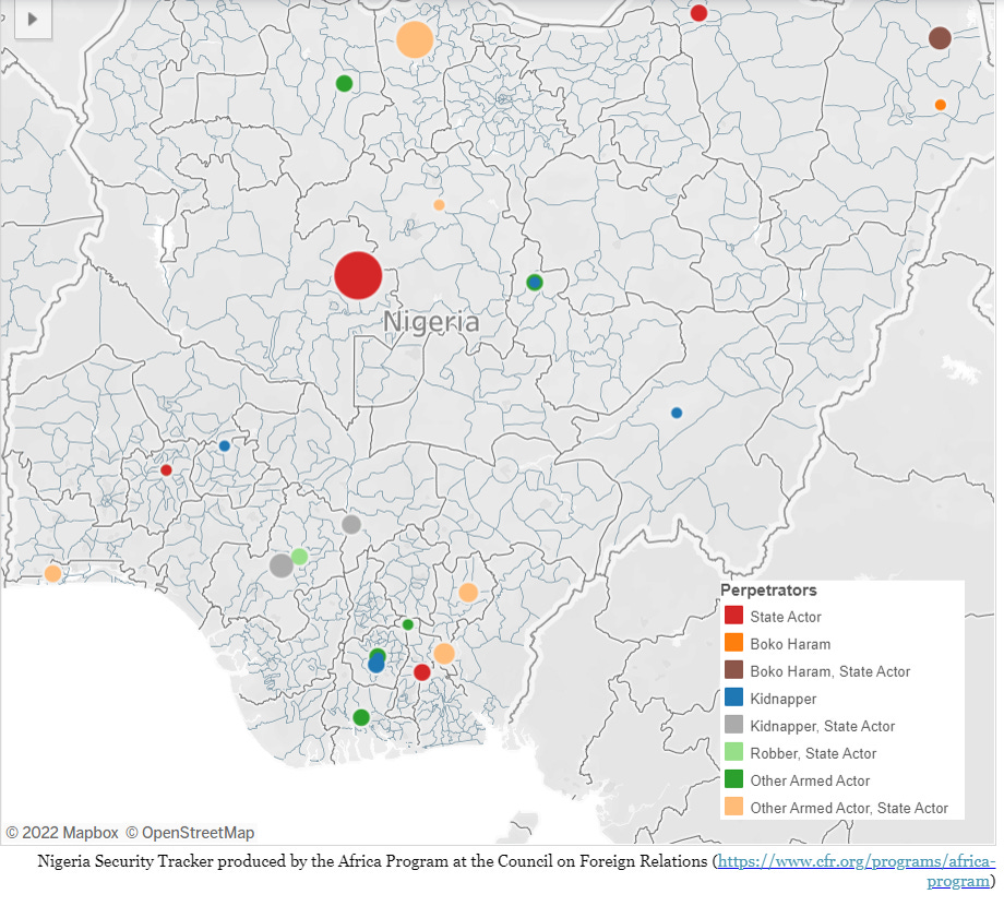 CFR's Nigeria Security Tracker Weekly Update: August 13-19, 2022Evarist ChahaliAug 23, 2022∙ PaidShareThis update represents violence in Nigeria and related to Boko Haram in Cameroon, Chad, and Niger from August 13 to August 19, 2022.This post is for paid subscribersSubscribeAlready a paid subscriber? Sign inPreviousNext