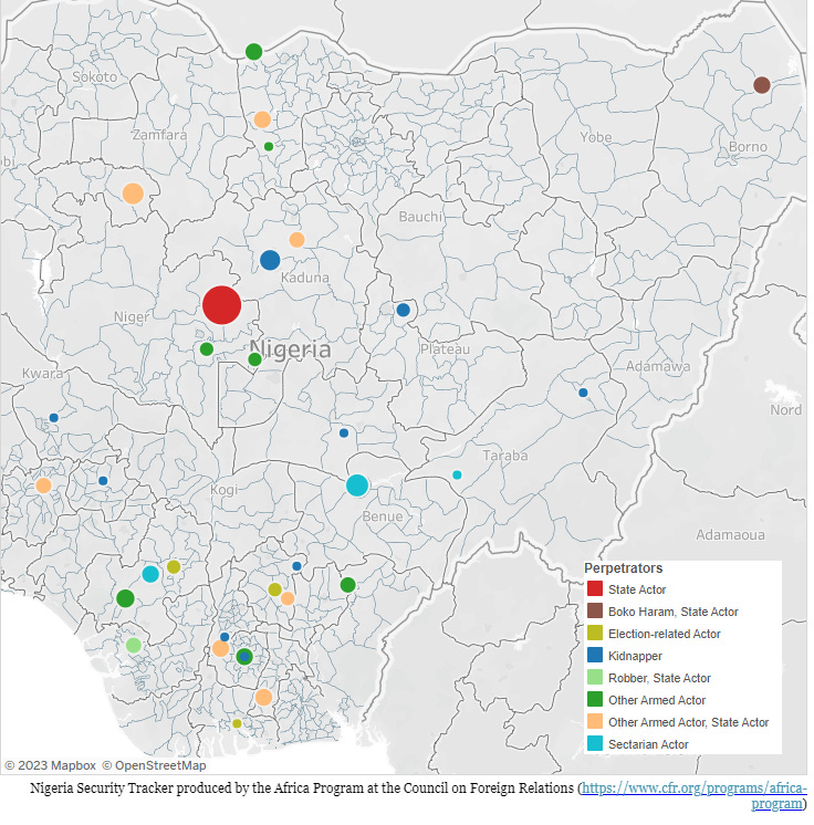 CFR's Nigeria Security Tracker Weekly Update: January 14-20, 2023Evarist ChahaliJan 26, 2023∙ PaidShareThis update represents violence in Nigeria and related to Boko Haram in Cameroon, Chad, and Niger from January 14 to January 20, 2023. This post is for paid subscribersSubscribeAlready a paid subscriber? Sign inPreviousNext