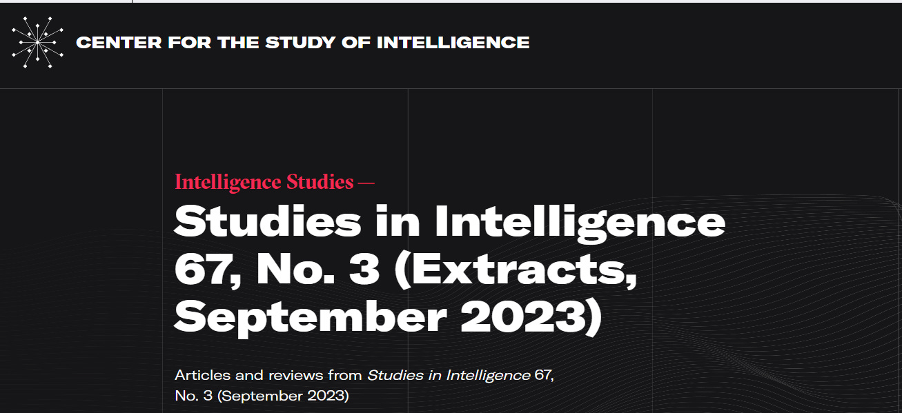 CIA: Studies in Intelligence 67, No. 3 (September 2023)Evarist ChahaliOct 29, 2023∙ PaidShareStudies Extracts 67 3 Sep 20236.93MB ∙ PDF fileDownloadDownloadSOURCEThank you for reading Ujasusi Blog. This post is public so feel free to share it.ShareThis post is for paid subscribersSubscribeAlready a paid subscriber? Sign inPreviousNext
