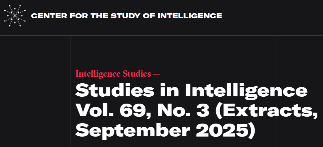 CIA: Studies in Intelligence Vol. 69, No. 3 (September 2025) Evarist ChahaliSep 29, 2025∙ PaidShareCIA: Studies in Intelligence, Vol 69,No 3 (September 2025)1.82MB ∙ PDF fileDownloadDownloadThis post is for paid subscribersSubscribeAlready a paid subscriber? Sign inPreviousNext