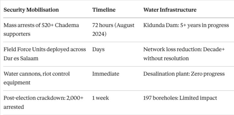 Alternative explanation: State abandonment through deprioritisation differs from active sabotage. The regime may simply not prioritise Dar es Salaam water infrastructure because: