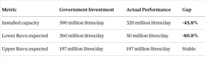 The Dar es Salaam Water and Sanitation Authority (DAWASA) reports catastrophic production failures: