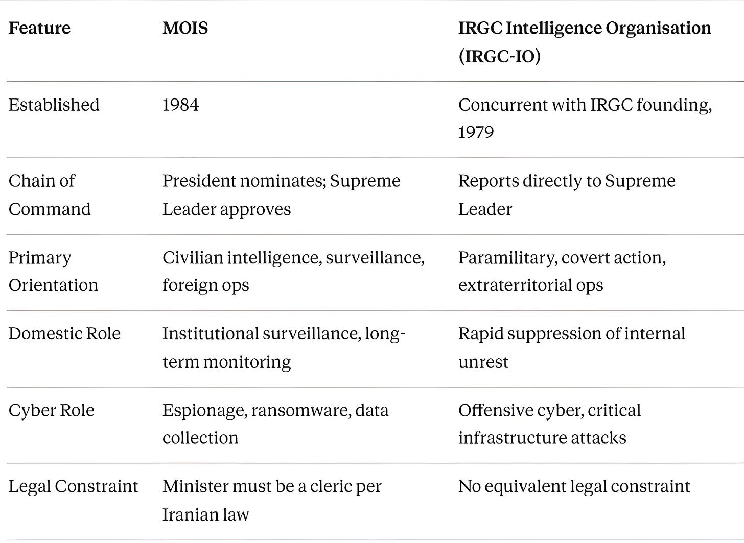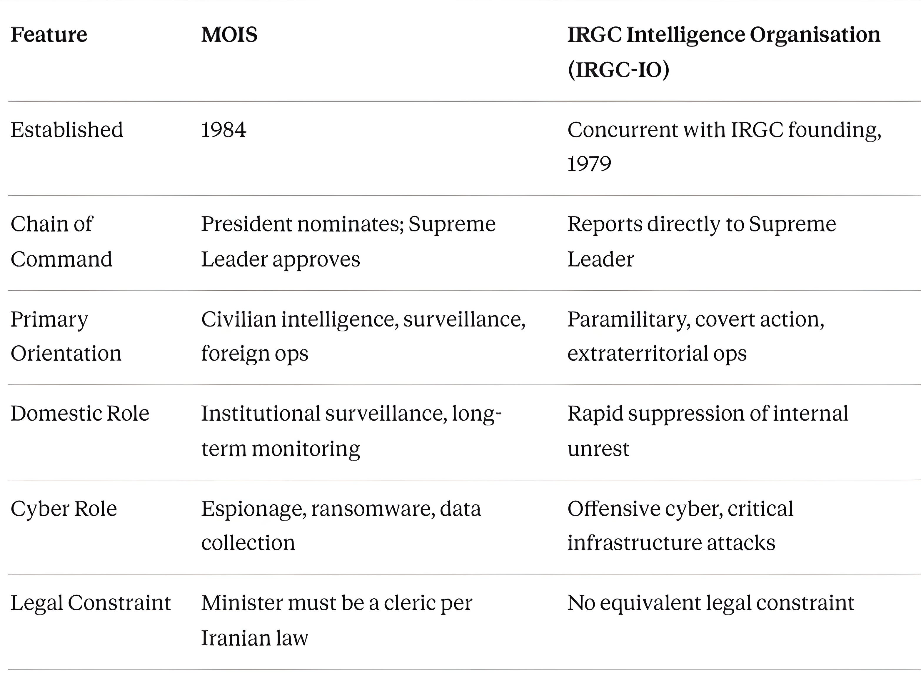 From an intelligence analysis standpoint, his retention under a nominally reformist president confirmed a structural reality about MOIS: the ministry’s operational and ideological direction is ultimately determined not by the elected executive but by the supreme leader’s office. This is a textbook example of what intelligence scholars term principal-agent capture — where the nominal principal (the elected president) loses effective control over the agent (the intelligence ministry) to a more powerful shadow principal (the supreme leader).