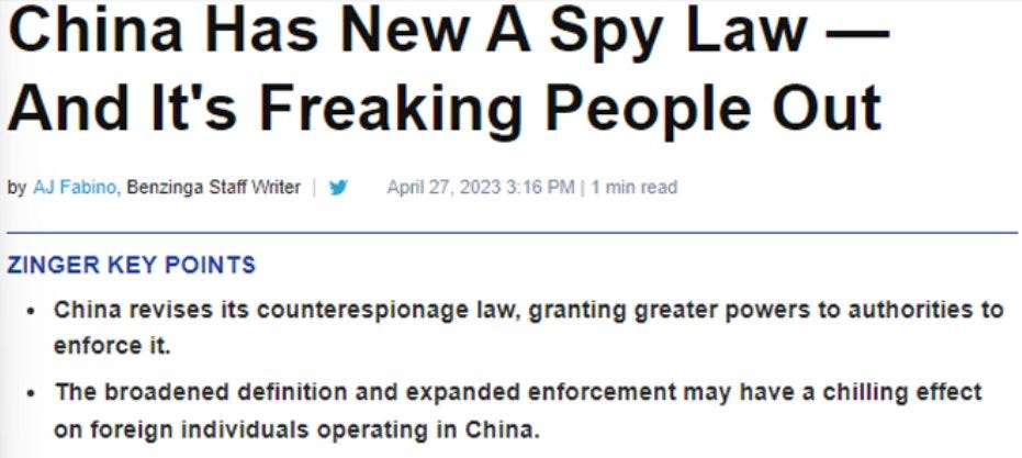 Full text: Counter-espionage Law of the People's Republic of China (which has just came into effect on July 1, 2023)