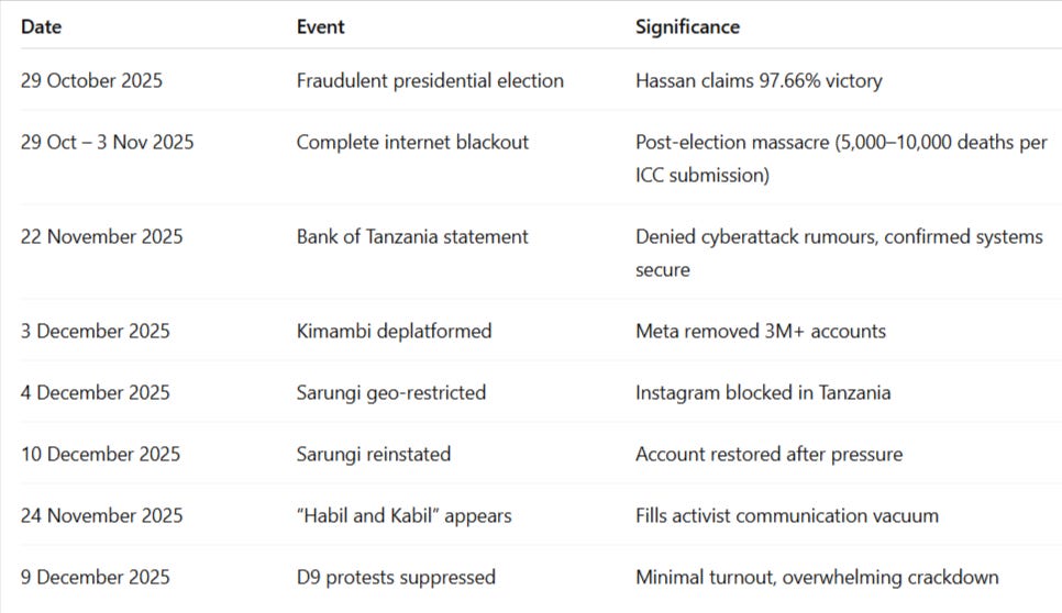 In the chaotic aftermath of Tanzania’s October 2025 election massacre—which left an estimated 5,000-10,000 dead over three days according to ICC investigation requests—a mysterious TikTok persona called “Habil and Kabil” (Swahili: “Habil na Kabil”) emerged in late November claiming extraordinary capabilities: government hacking skills, access to state secrets, and the power to disrupt Tanzania’s digital infrastructure. The figure rapidly gained prominence amongst protesters mobilising for the December 9 Independence Day demonstrations, filling the vacuum left when diaspora activist Mange Kimambi’s 3 million-follower Instagram accounts were banned by Meta. But who was “Habil and Kabil” really? A patriot trying to rally a traumatised nation? Or something far more sinister? This report provides in-depth intelligence profiling of the controversial figure —examining digital footprints, tradecraft patterns, and operational outcomes to answer the question that has divided Tanzania’s activist community: asset or liability?