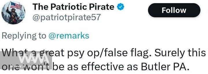 One user wrote: “What an incredible psychological operation and false flag! Of course, this one won’t be as effective as Butler, Pennsylvania (referring to the failed assassination attempt on Trump).”