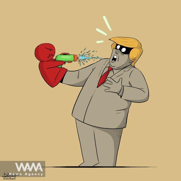 A Yemeni cartoonist reacted to the shooting at the White House Correspondents’ Dinner with a cartoon suggesting the incident was staged and pre-planned.