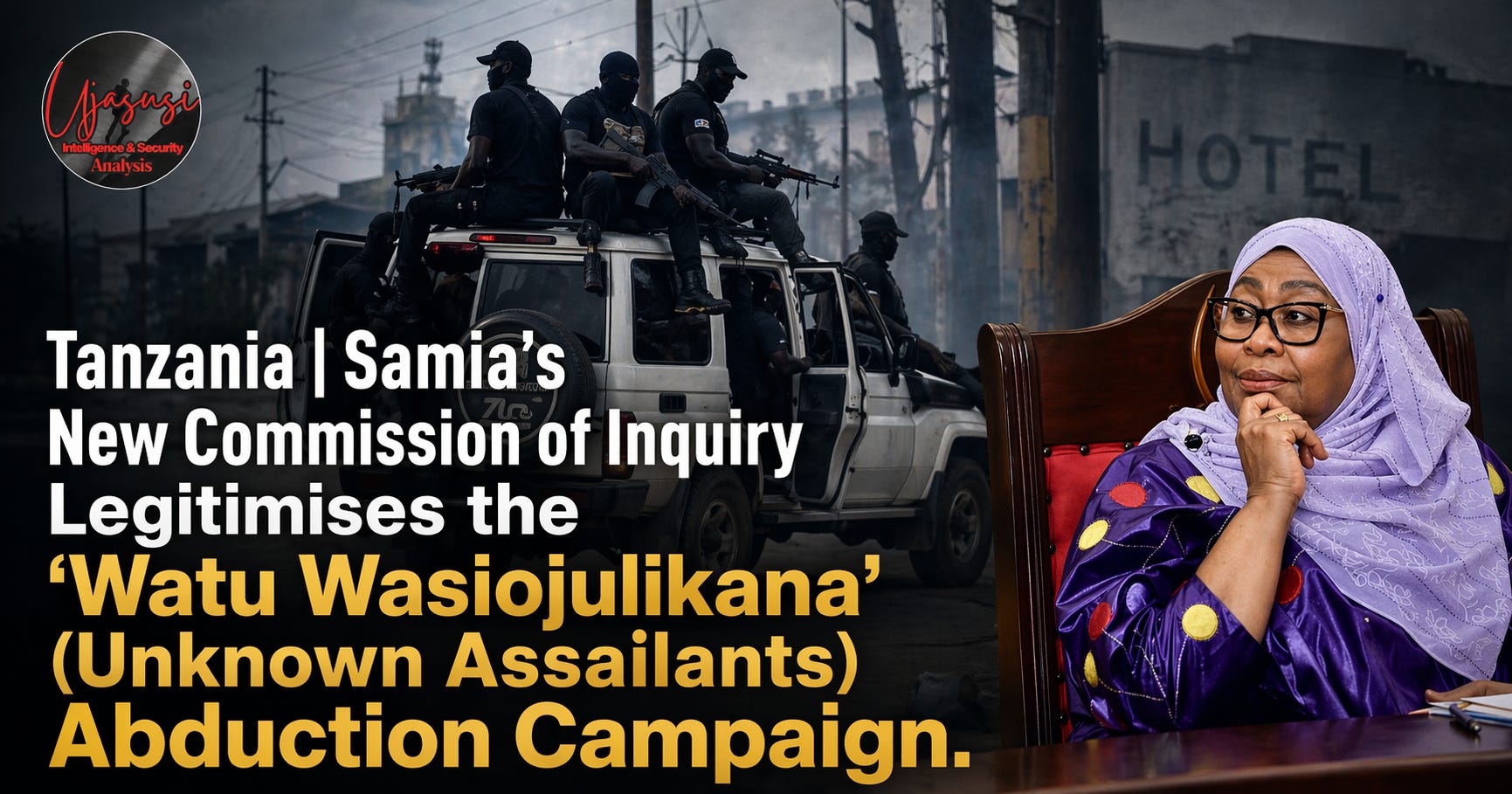 TANZANIA | President Samia Suluhu Hassan’s new special probe team, announced immediately after receiving the Chande Commission report on 23 April 2026, is not a belated move toward accountability. It is a second procedural layer designed to absorb the evidentiary record of approximately 10,000 post-election killings into an indefinite investigative holding pattern; meanwhile, the same pattern of abductions, torture, sexual violence and killings by Watu Wasiojulikana (Swahili: “unknown assailants”) continues in real time. The new body legitimises, rather than interrupts, the operational architecture of Tanzania’s enforced-disappearance campaign.