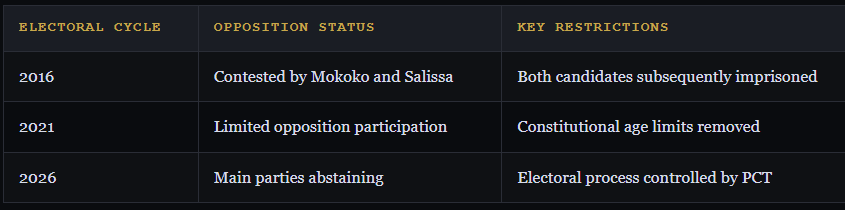 The opposition’s strategic fragmentation and abstention by major parties signal a collapse of competitive politics. Without credible challengers or institutional safeguards, the election functions as a ratification exercise rather than a genuine contest. Historical patterns of post-election repression, exemplified by the imprisonment of 2016 candidates, further disincentivise political participation.