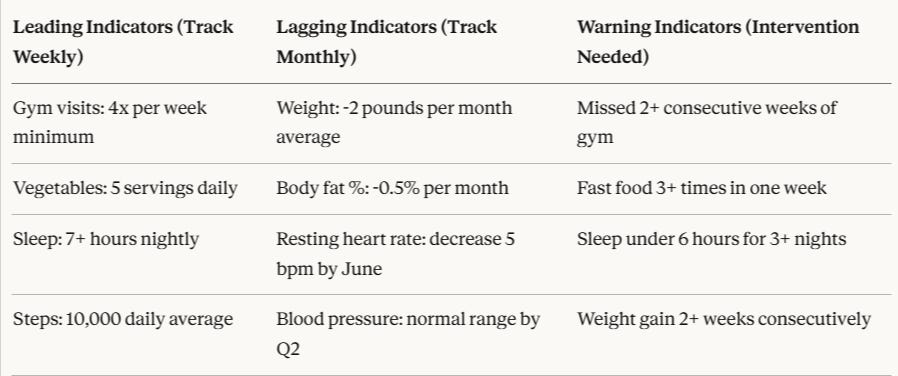Why this works: Intelligence agencies adjust operations based on indicators—you adjust behavior based on your metrics. Weekly leading indicators catch problems before monthly results show failure.