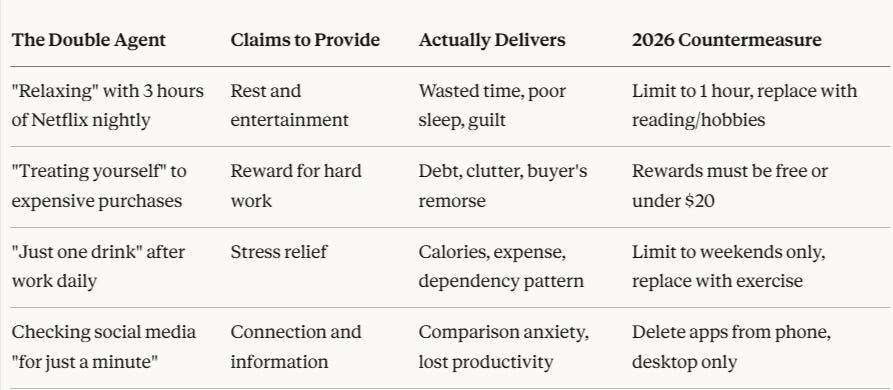In espionage, double agents pretend loyalty while serving another master. Your bad habits are double agents—they appear to serve you (stress relief, comfort, pleasure) while actually working against your goals.