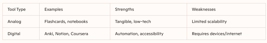 Comparison Table: Analogue vs. Digital Tools