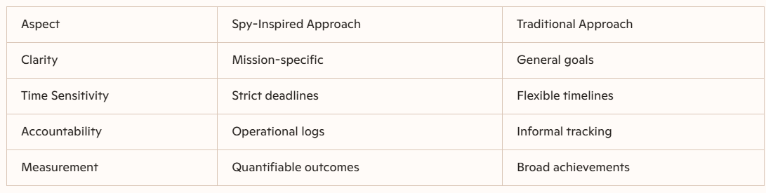 Comparison Table: Mission Objectives vs. Traditional Goal Setting
