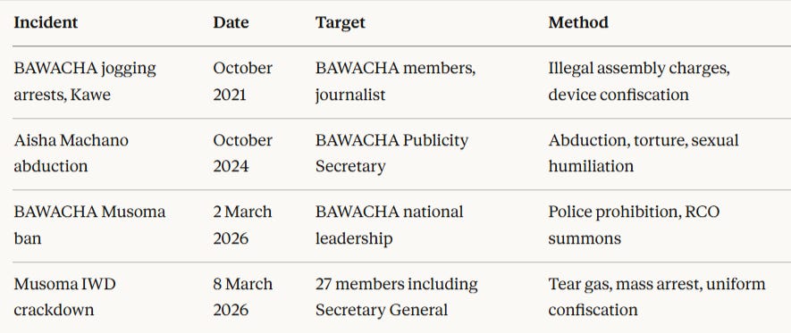 BAWACHA denied all charges of violence and economic obstruction. The organisation’s statement characterised the police operation as gender-based harassment designed to suppress political dissent, and concluded with an explicit declaration that it was “not ready to be silenced.”
