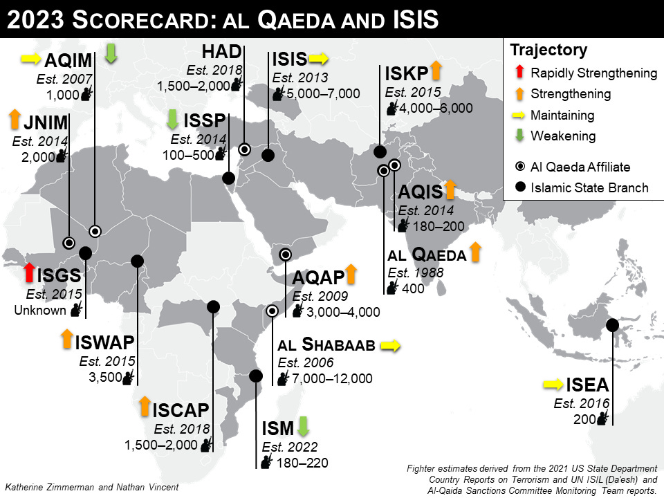 The Salafi-jihadi threat persists across Africa, the Middle East, and into Asia. Al Qaeda– and Islamic State–affiliated groups are engaged in local conflicts and have sought ways to strengthen on the ground within popular insurgencies.