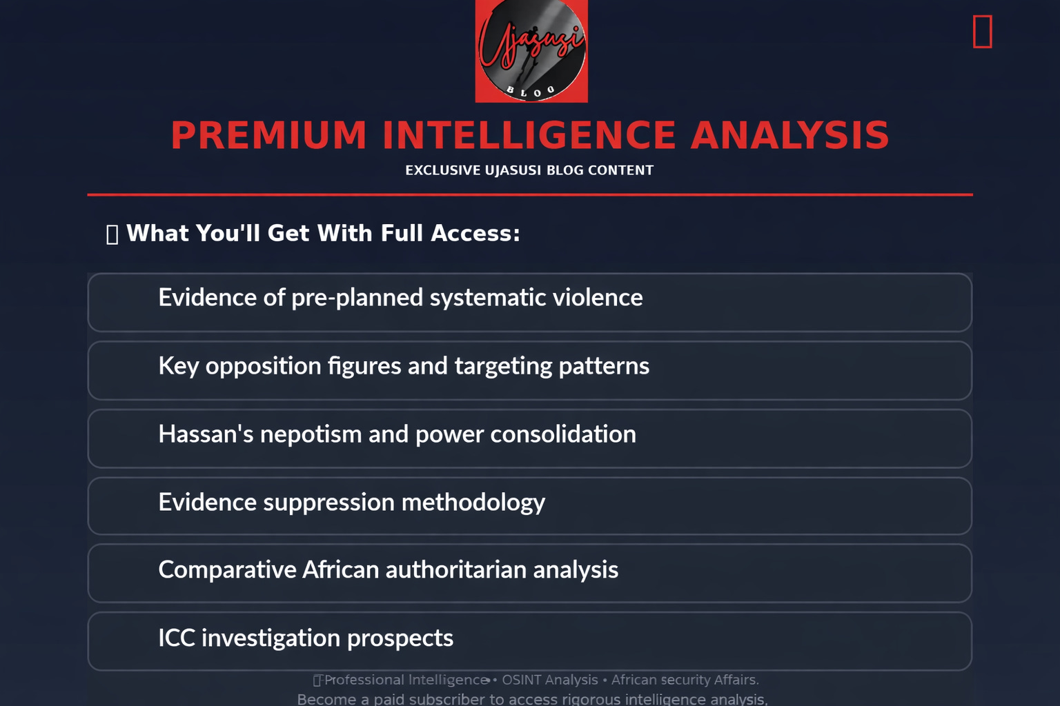 Intelwatch has formally called on the International Criminal Court to investigate Hassan and her government for crimes against humanity, submitting documentation supporting charges of murder, rape, torture, and kidnapping dating back to 2022.