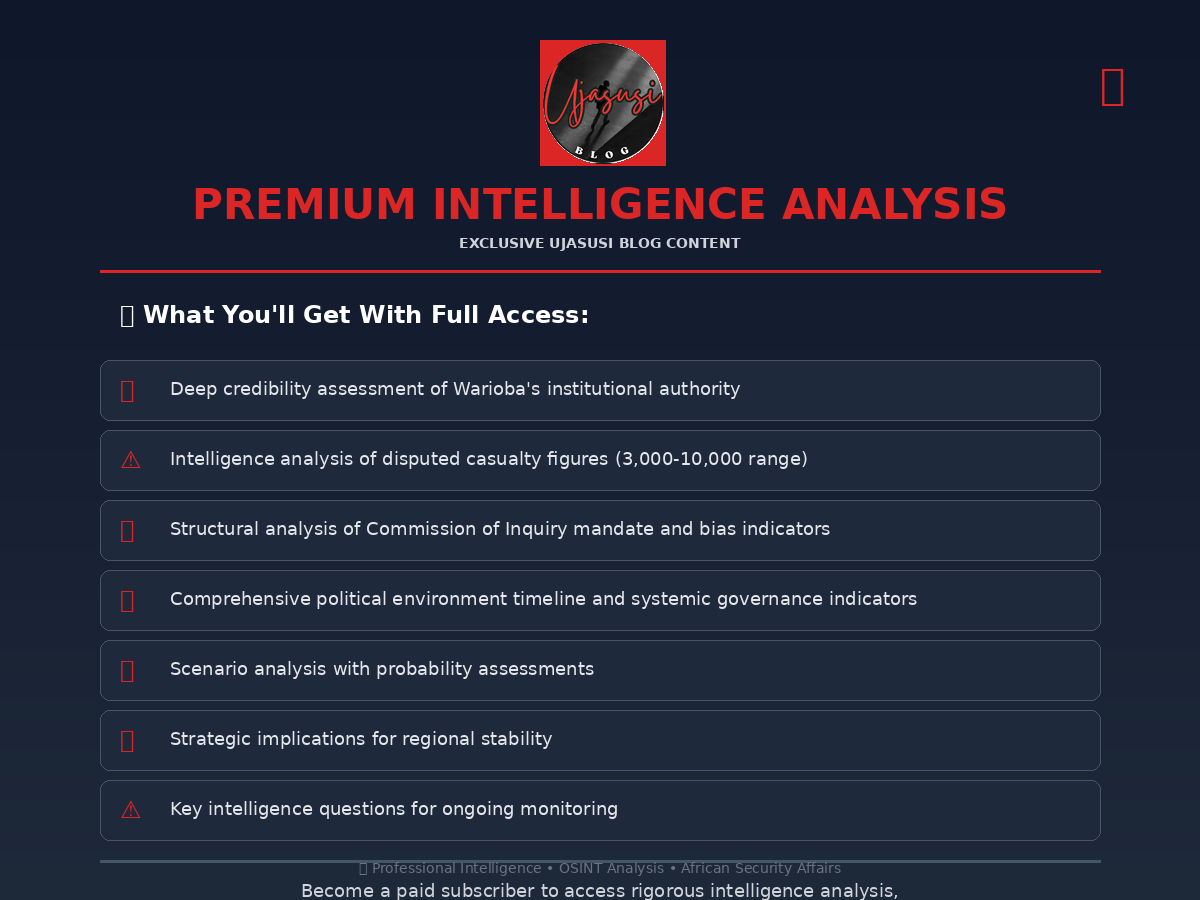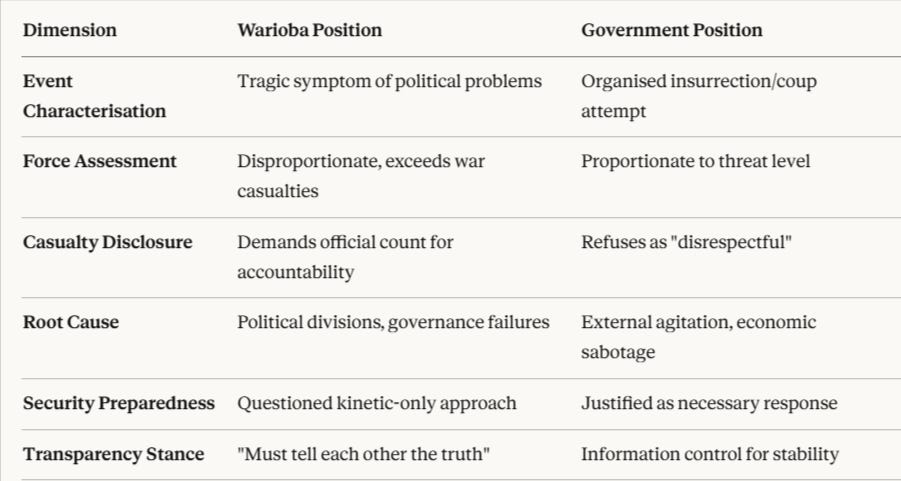 Strategic Significance: Wariobaâs intervention represents the first high-level elite criticism of the governmentâs security response from within Tanzaniaâs political establishment, potentially signalling fractures in regime consensus.